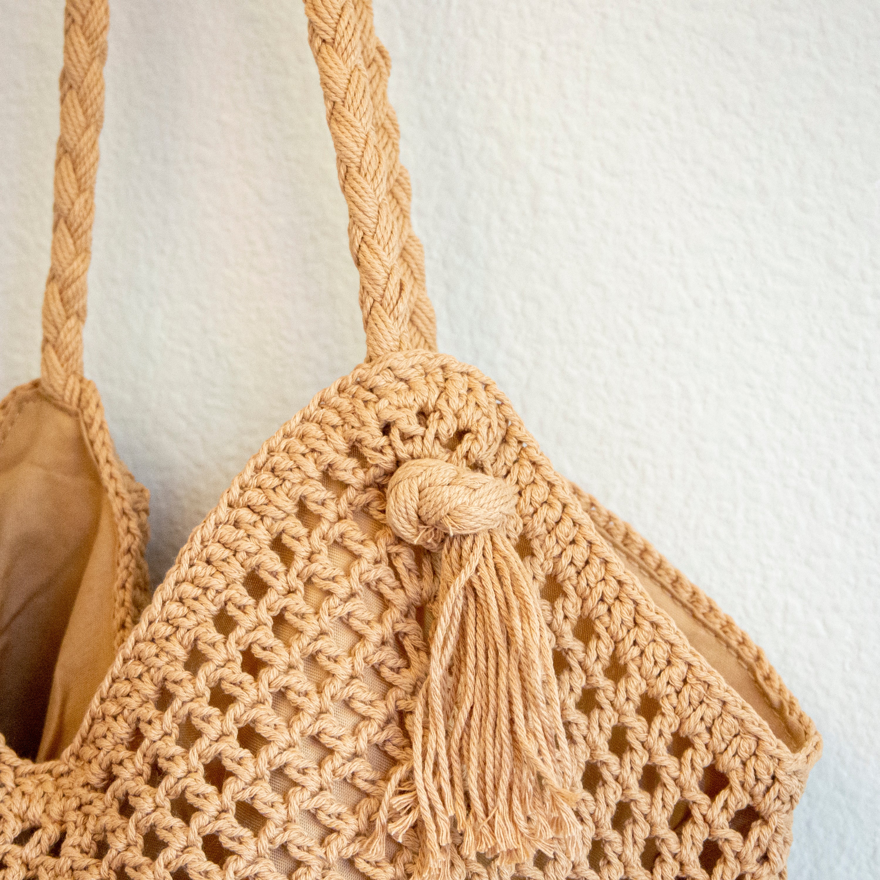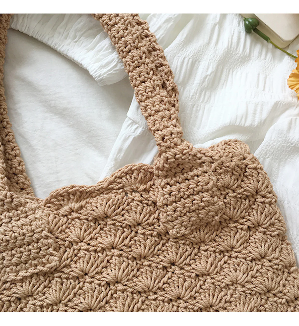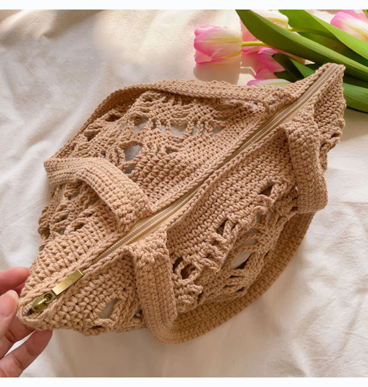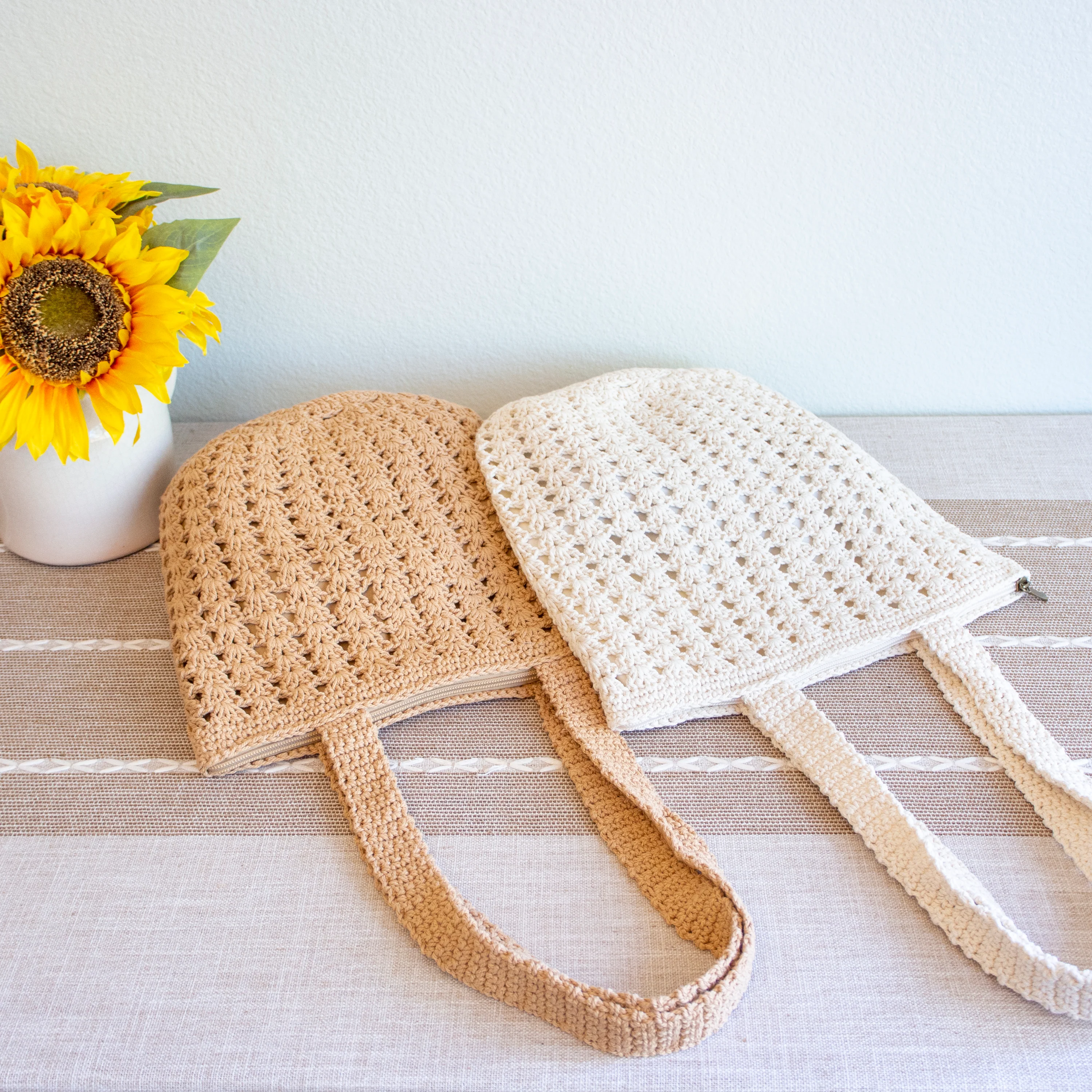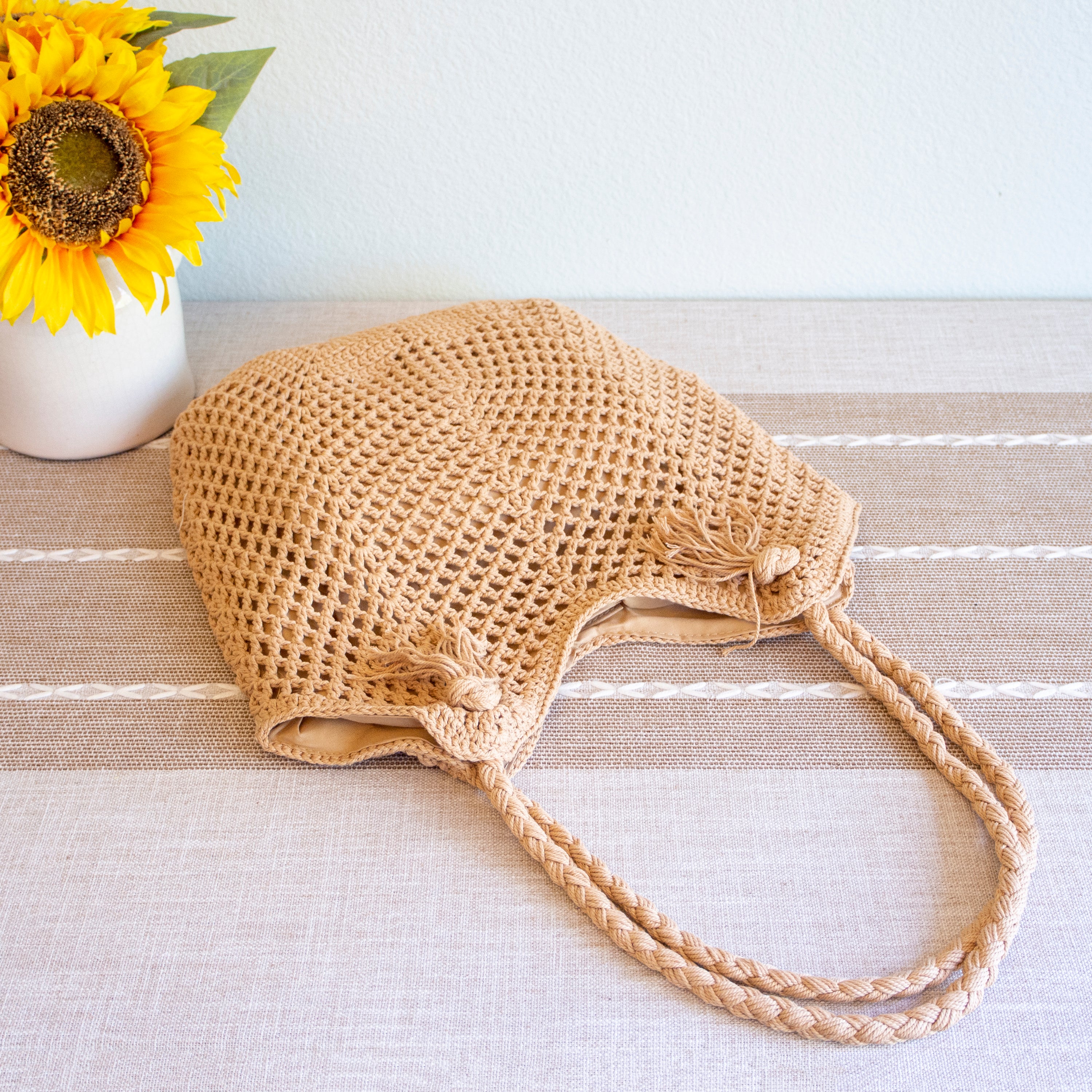 Handmade Crochet Large Cotton Knitted Top Handle Bag with Fishnet Design