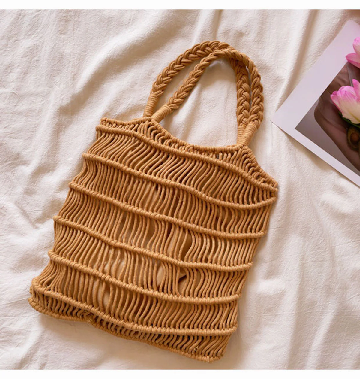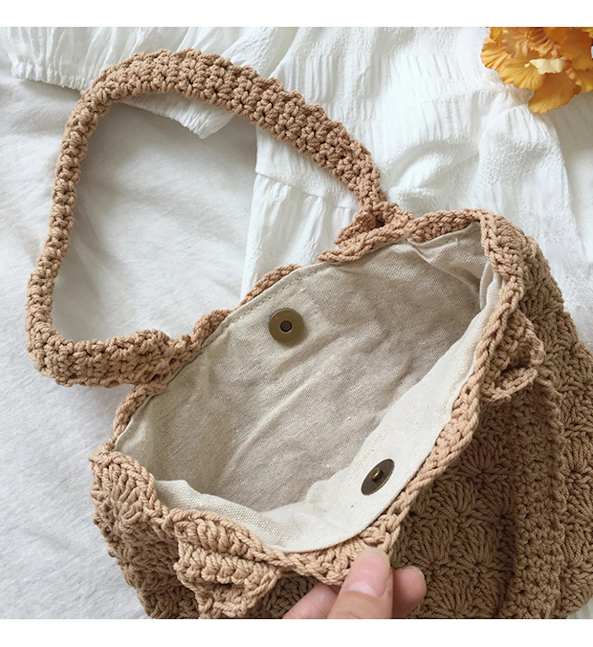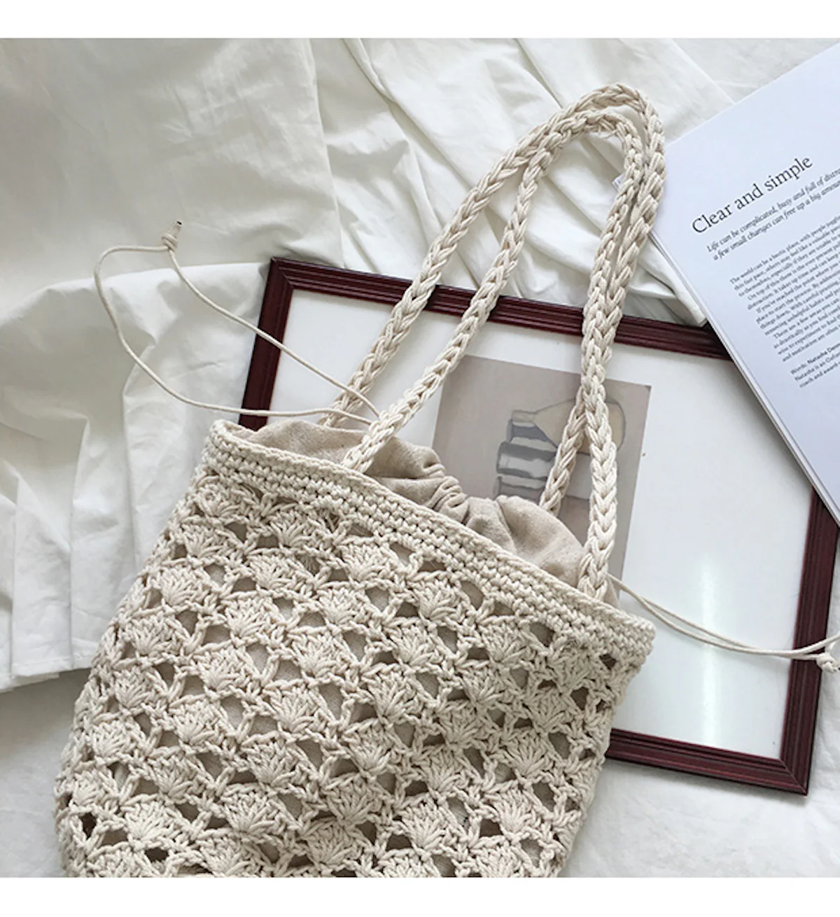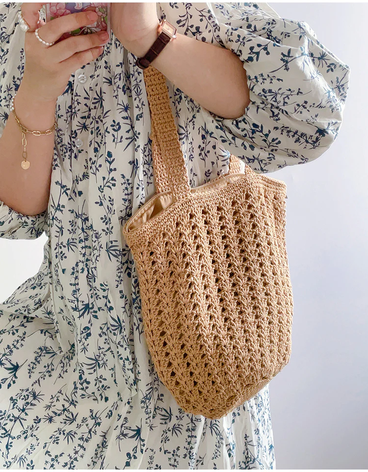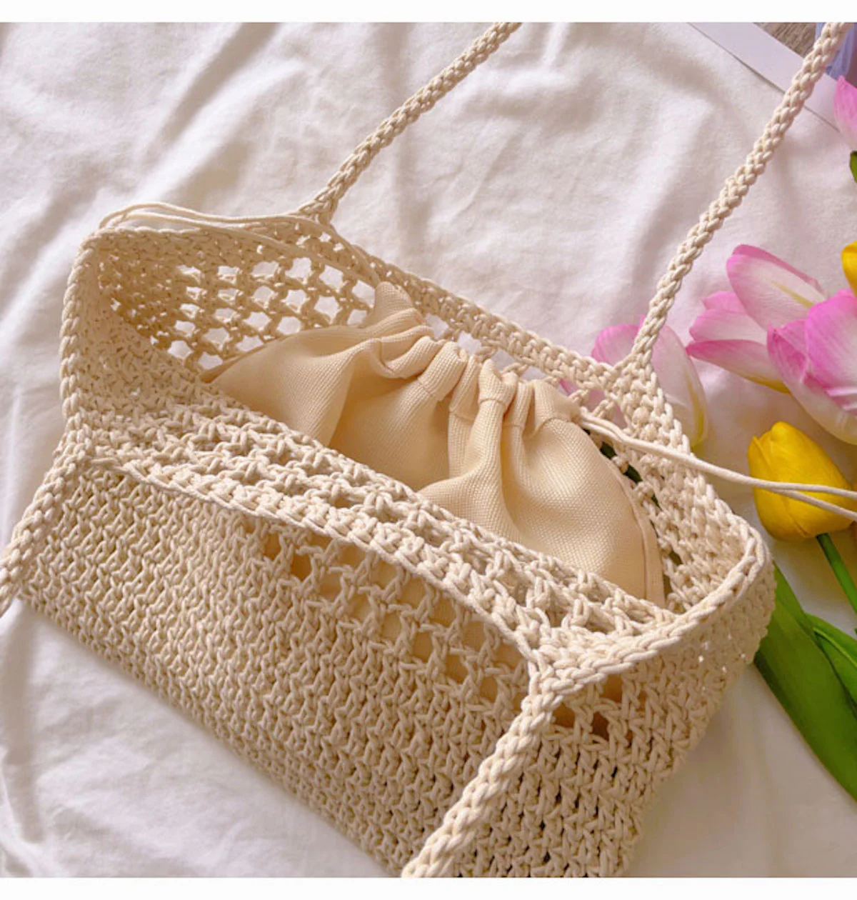 Handmade Crochet Large Cotton Knitted Top Handle Bag with Fishnet Design
