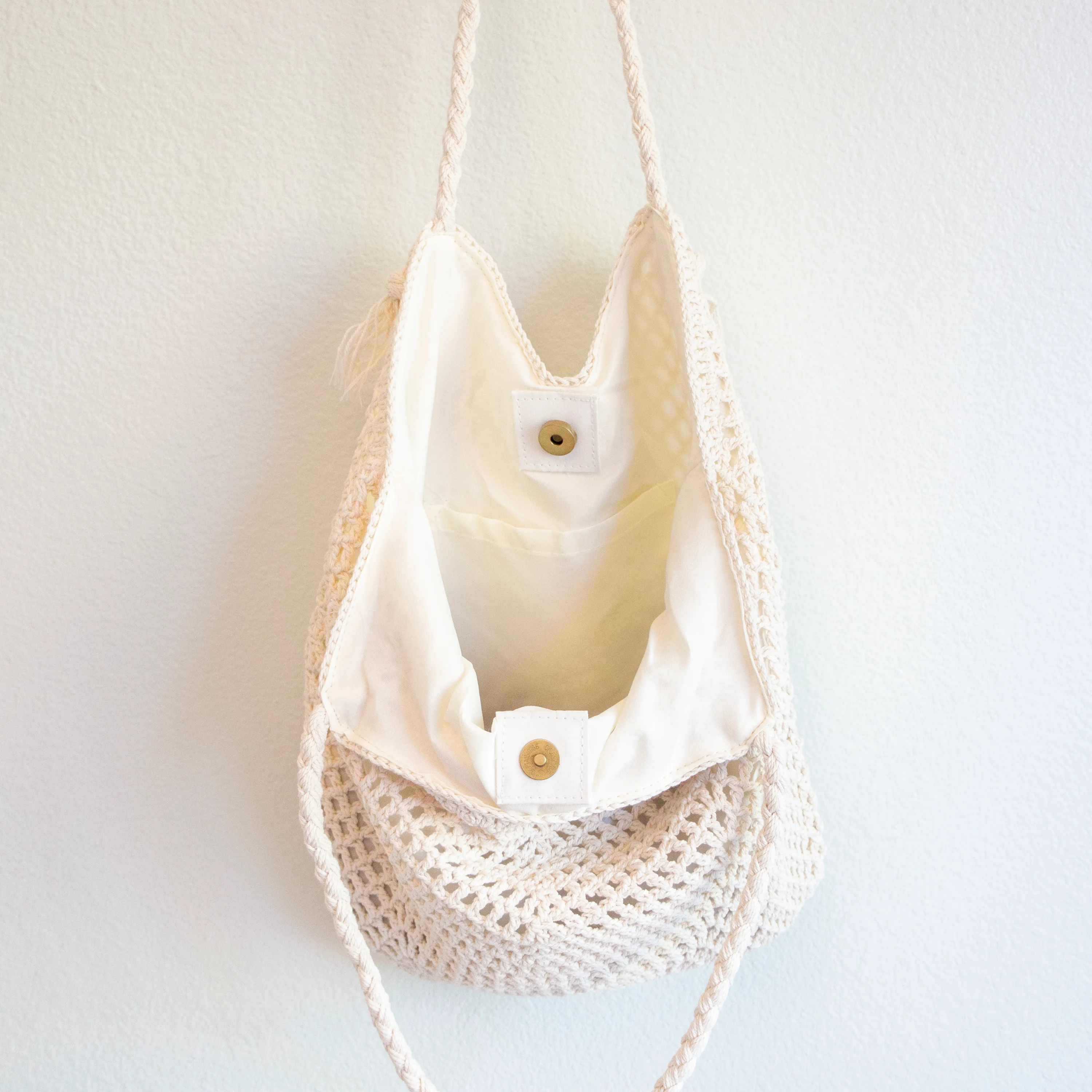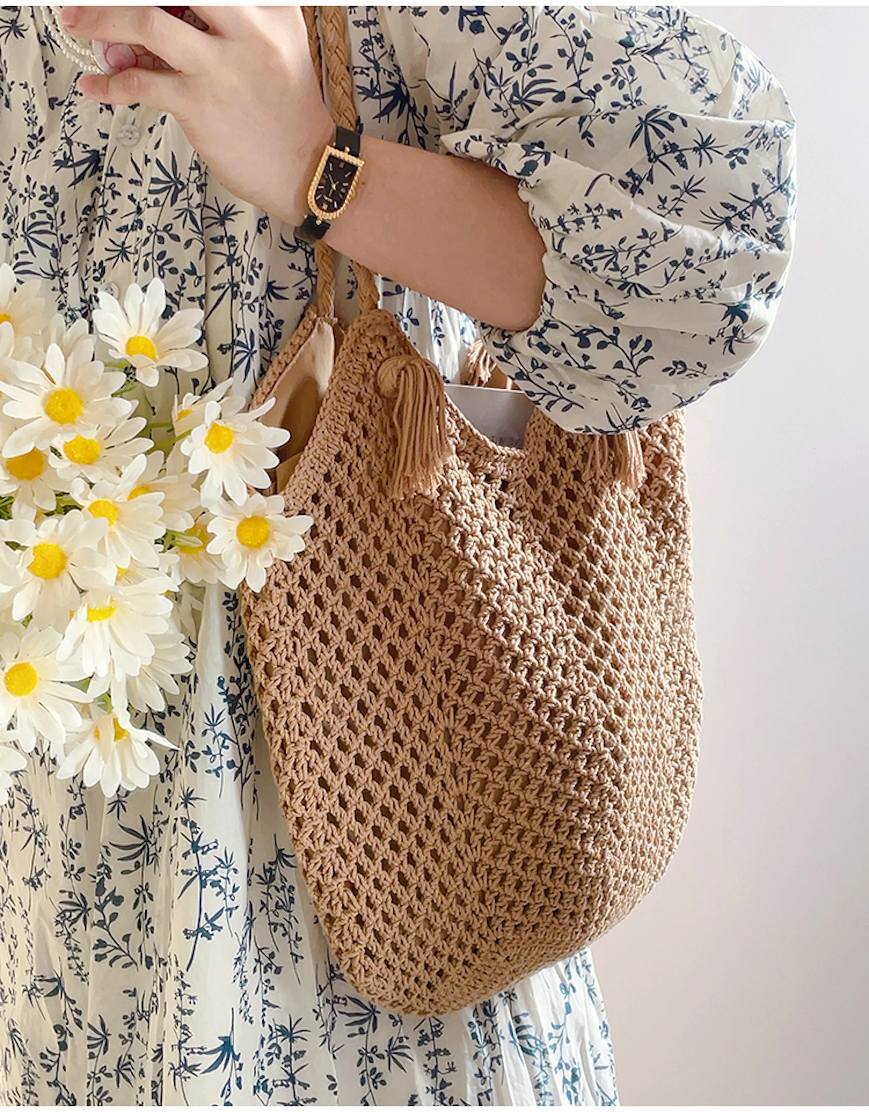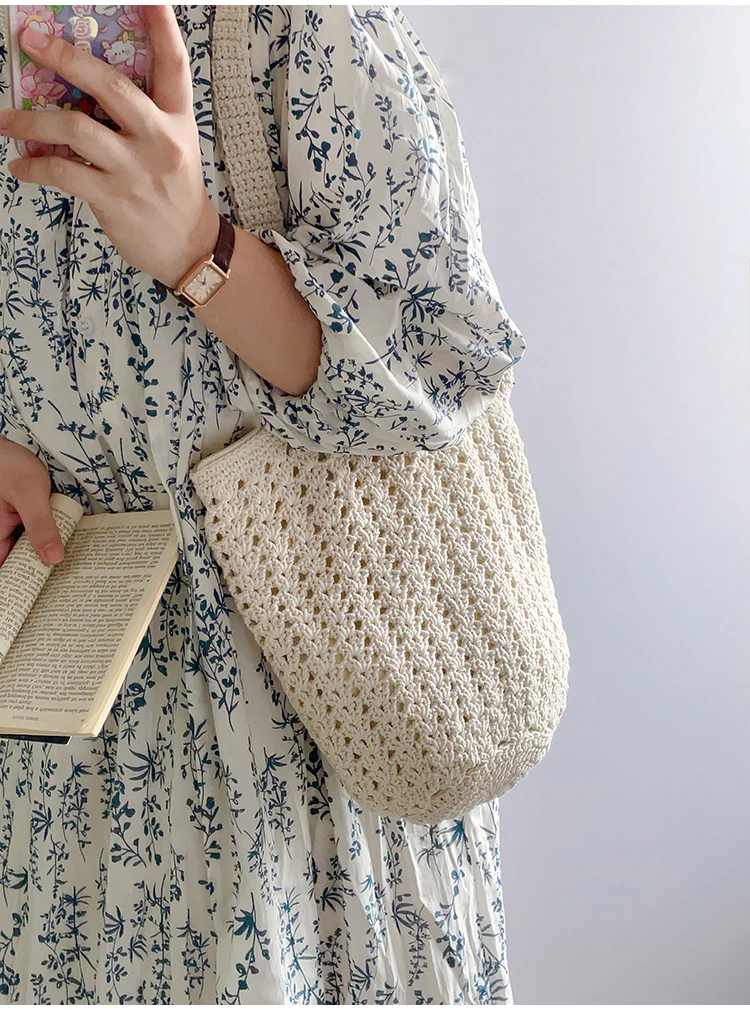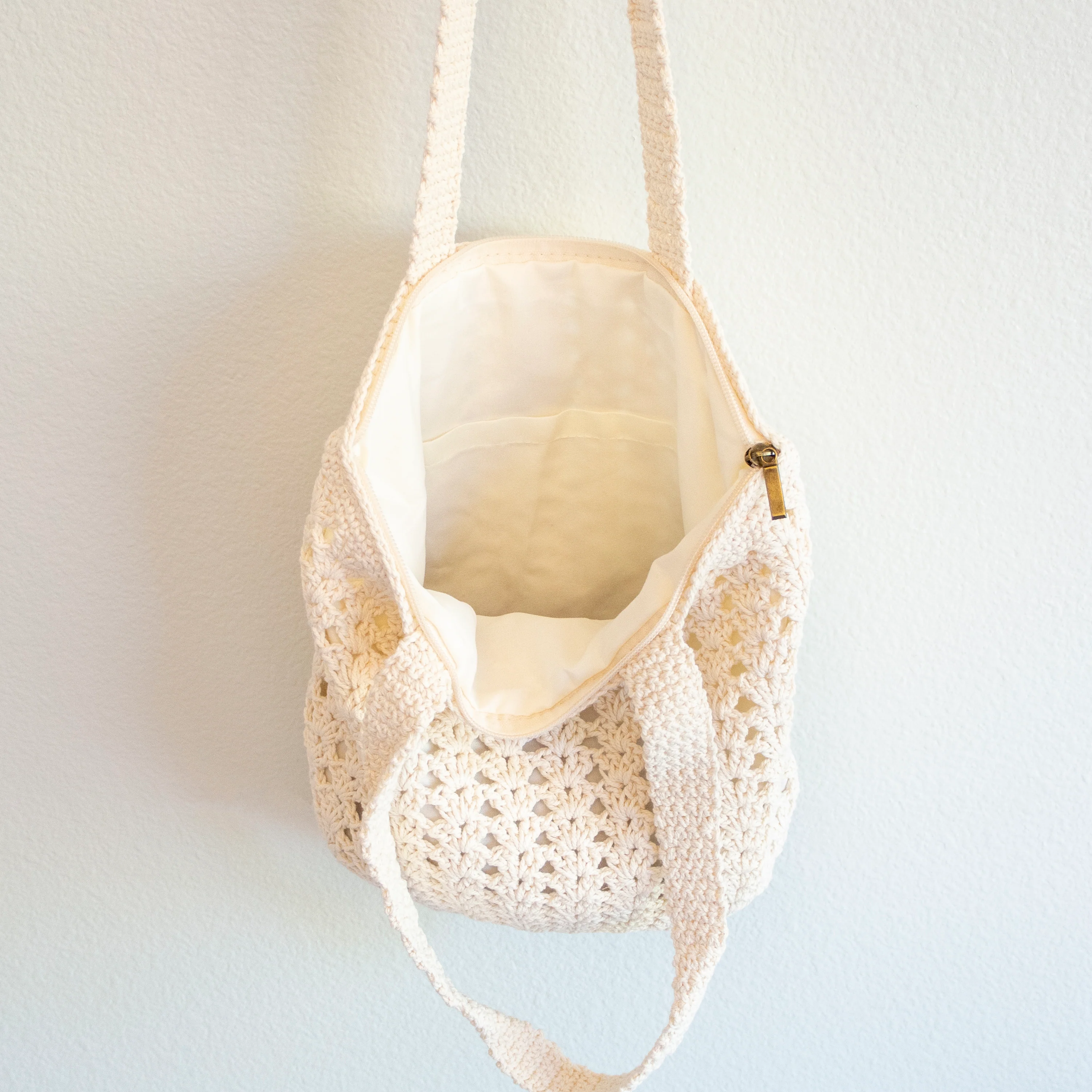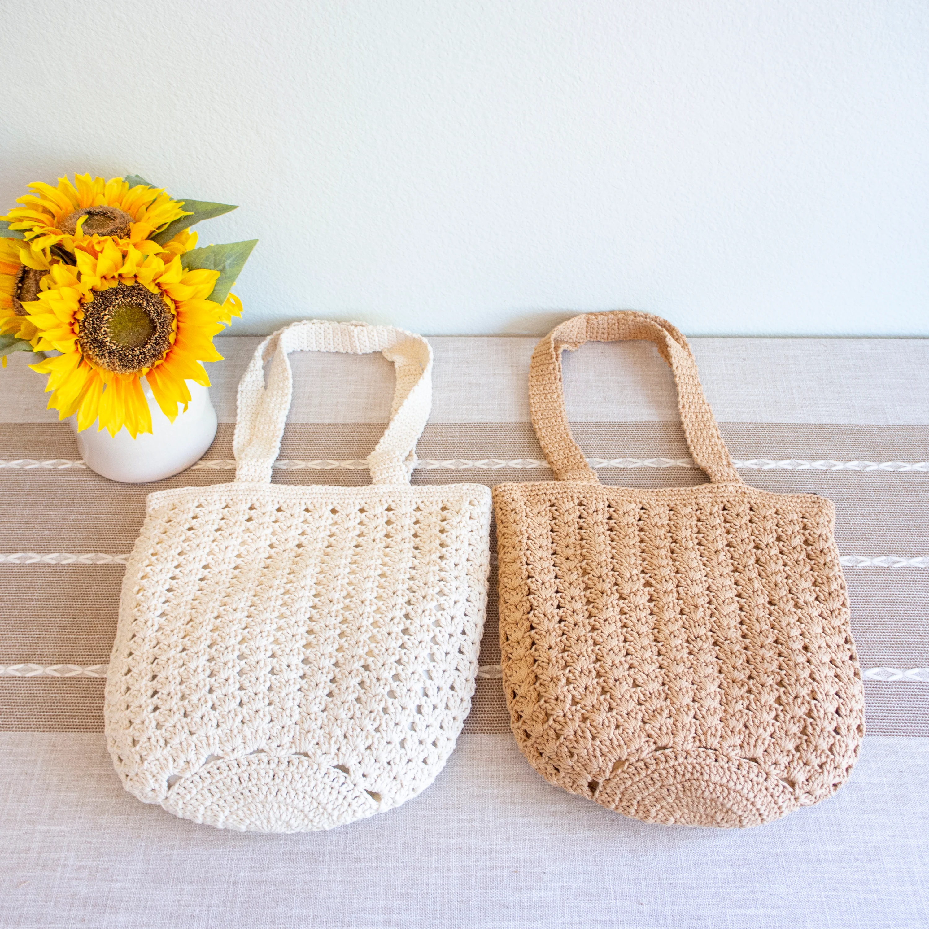 Handmade Crochet Large Cotton Knitted Top Handle Bag with Fishnet Design