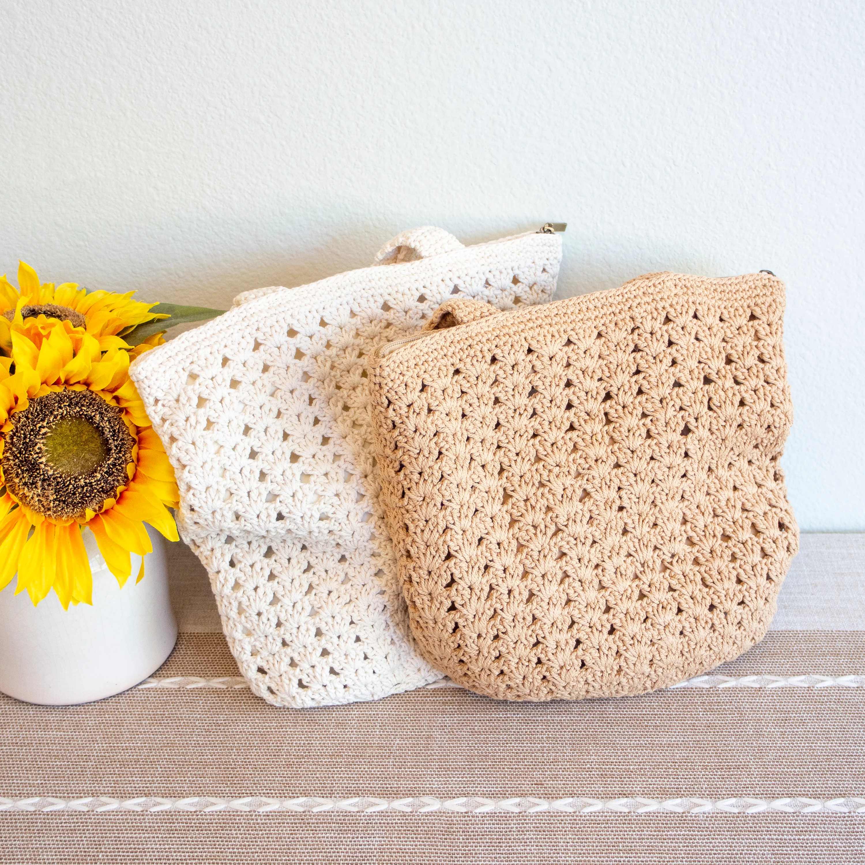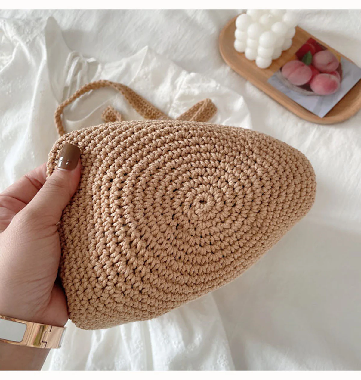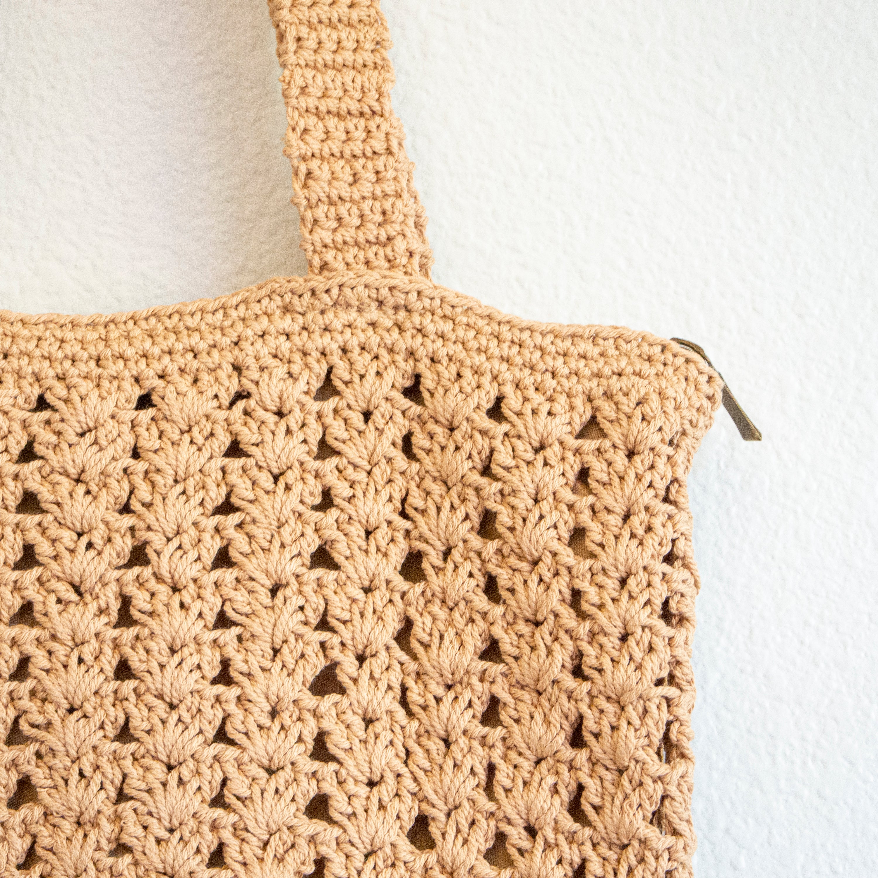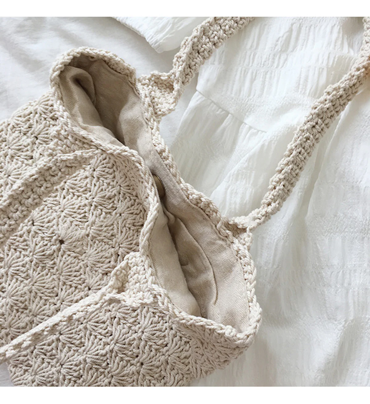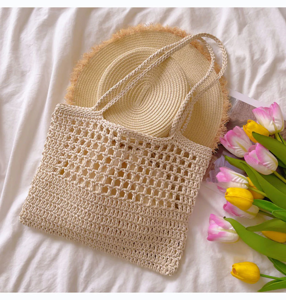 Handmade Crochet Large Cotton Knitted Top Handle Bag with Fishnet Design