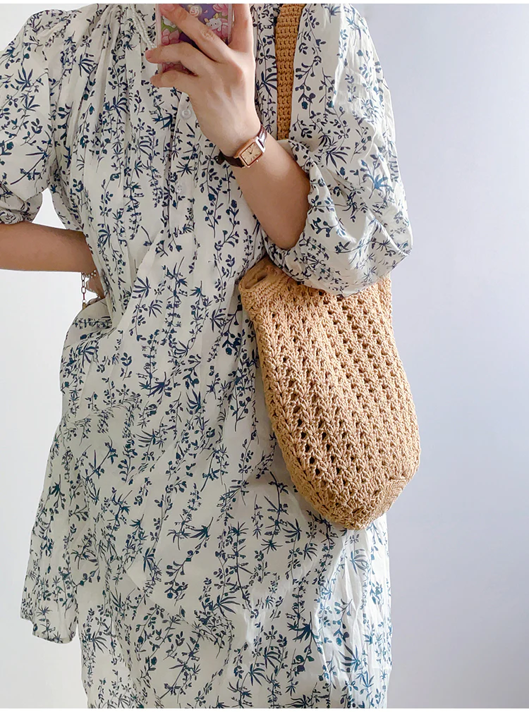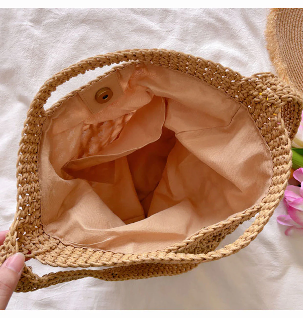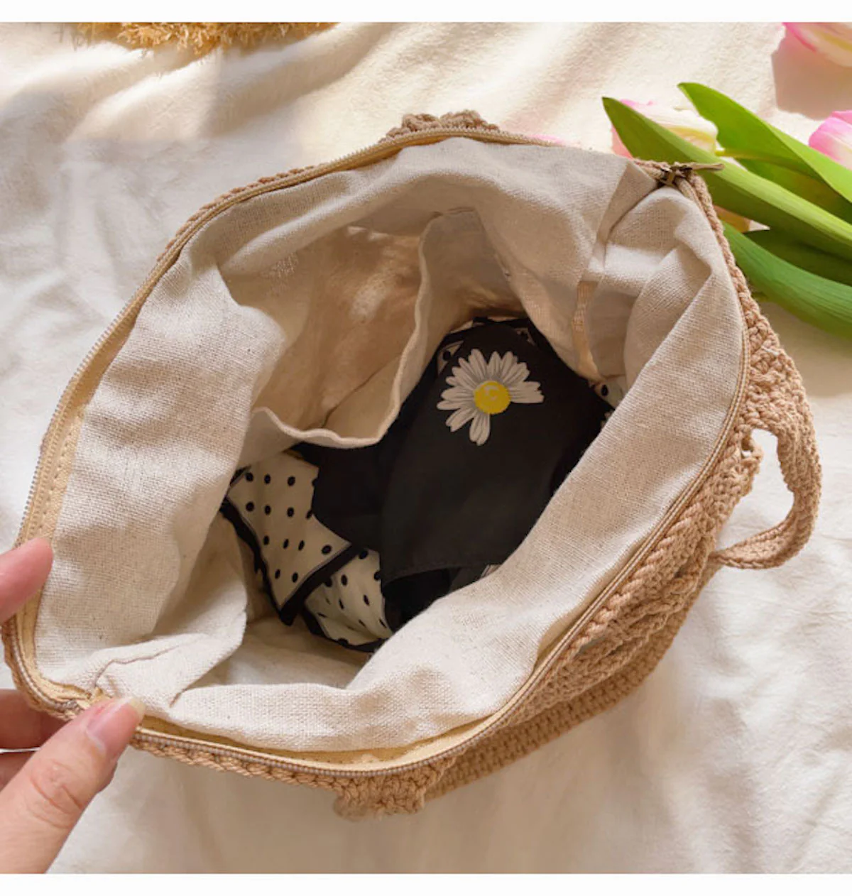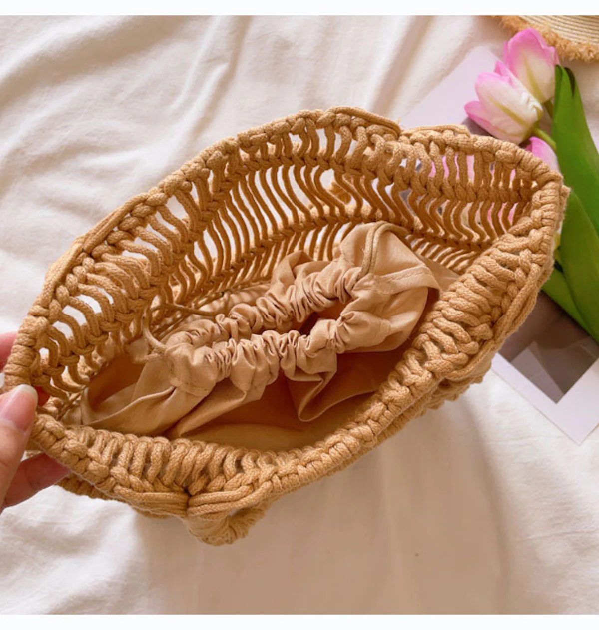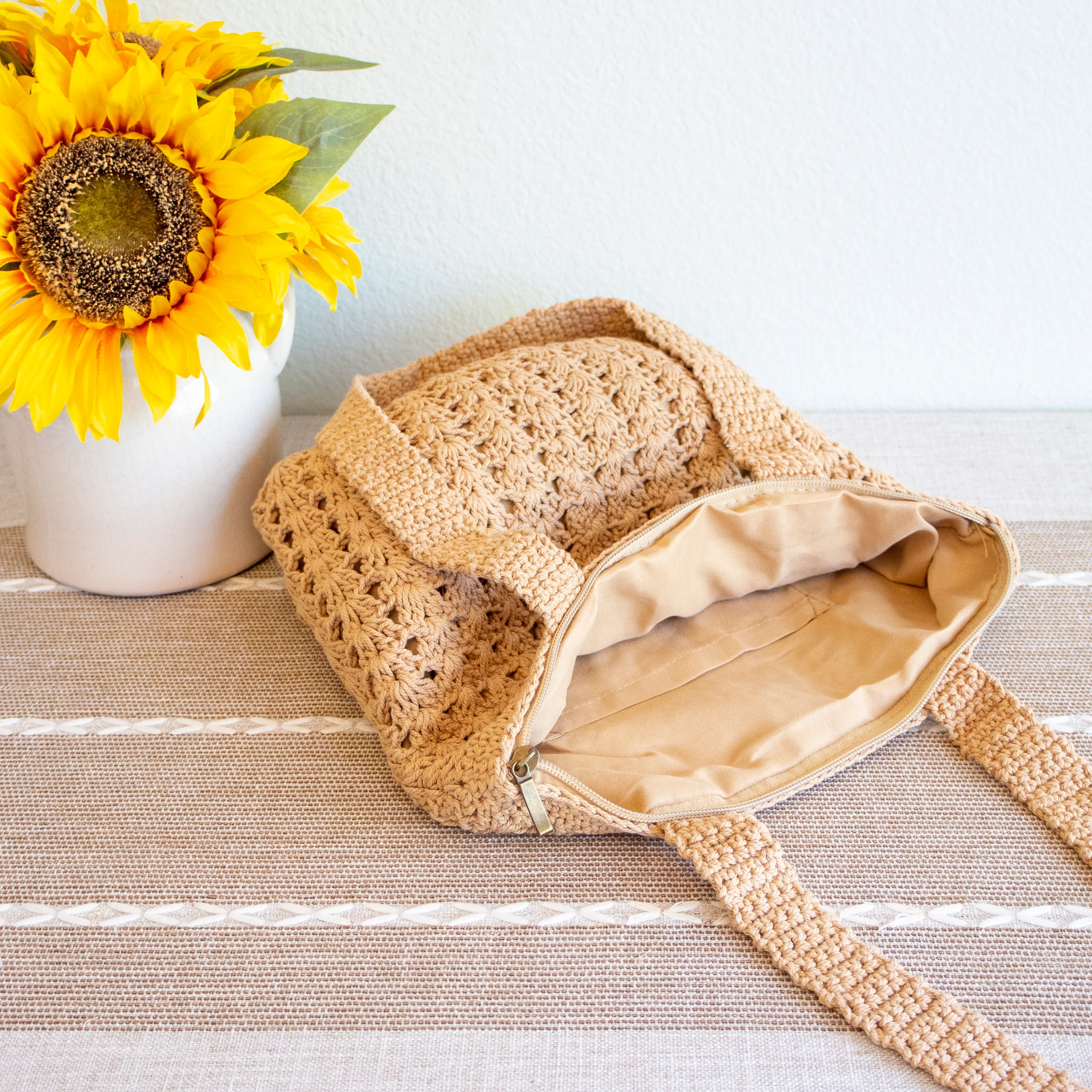 Handmade Crochet Large Cotton Knitted Top Handle Bag with Fishnet Design