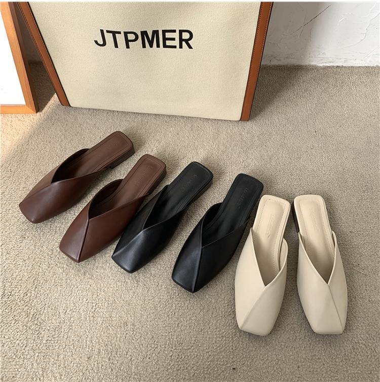 Green Cowhide Leather Retro Splicing Flip Flops Slide Sandals