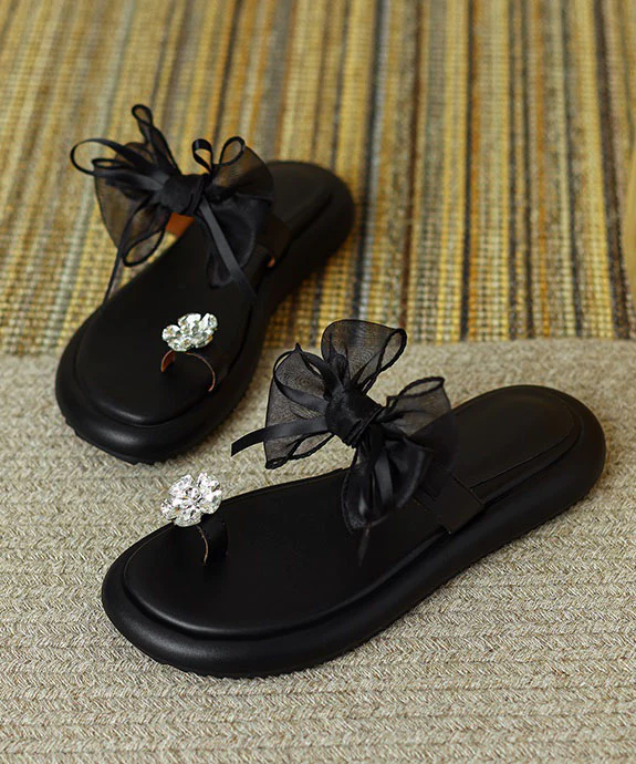 Black Zircon Tulle Bow Comfortable Splicing Slide Sandals