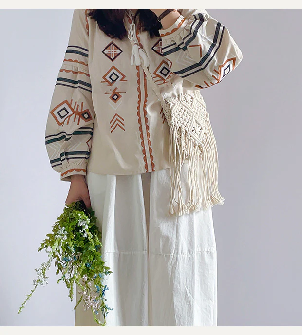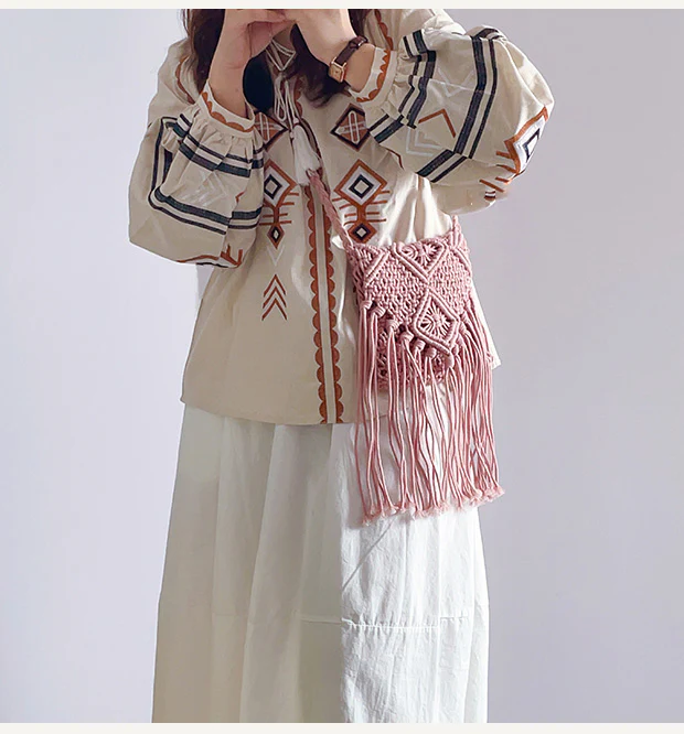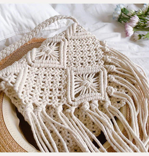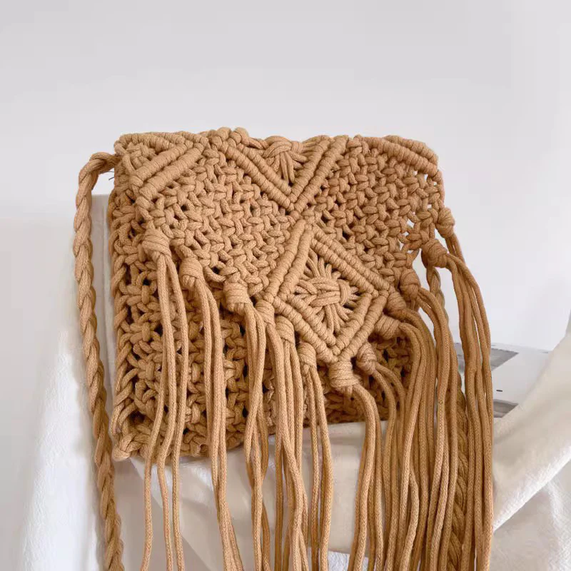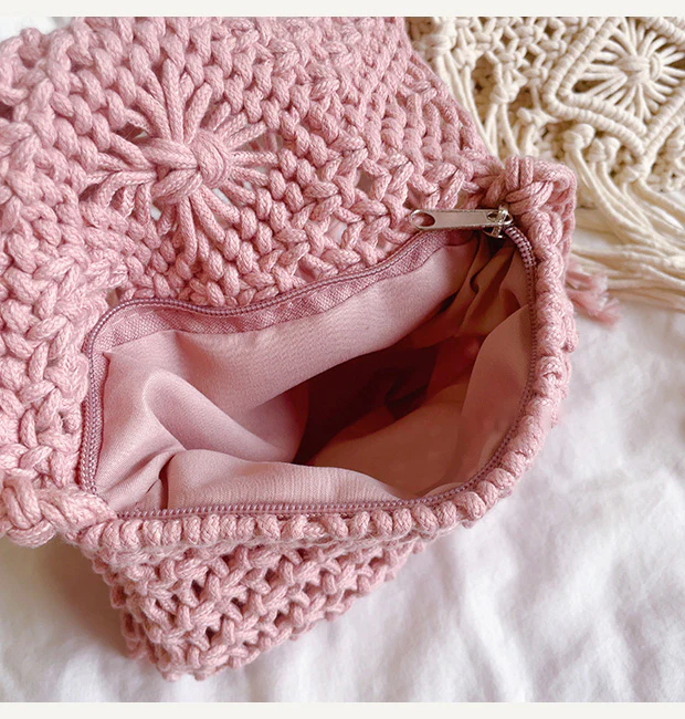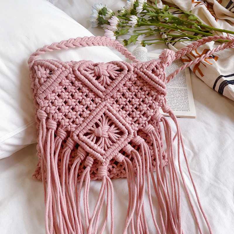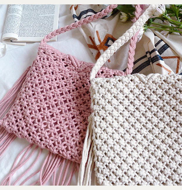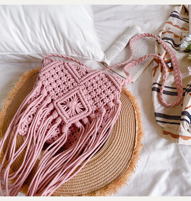 Retro Cotton Macrame Crossbody Bag with Tassels