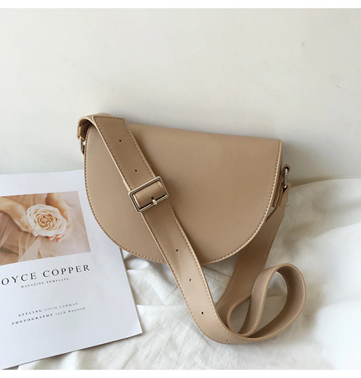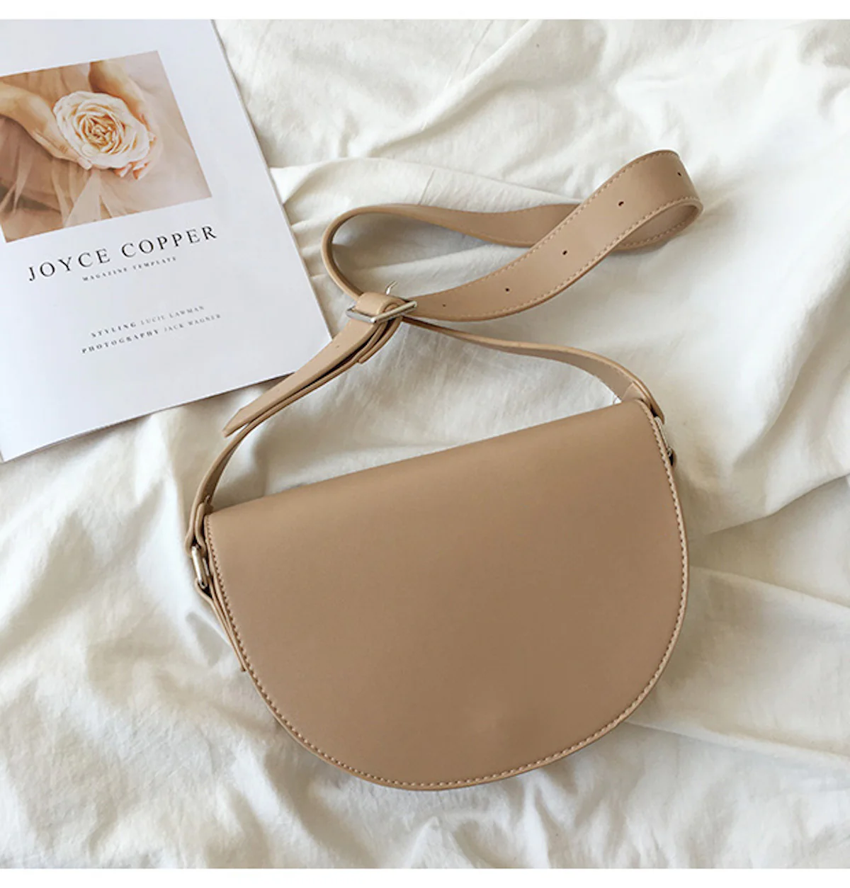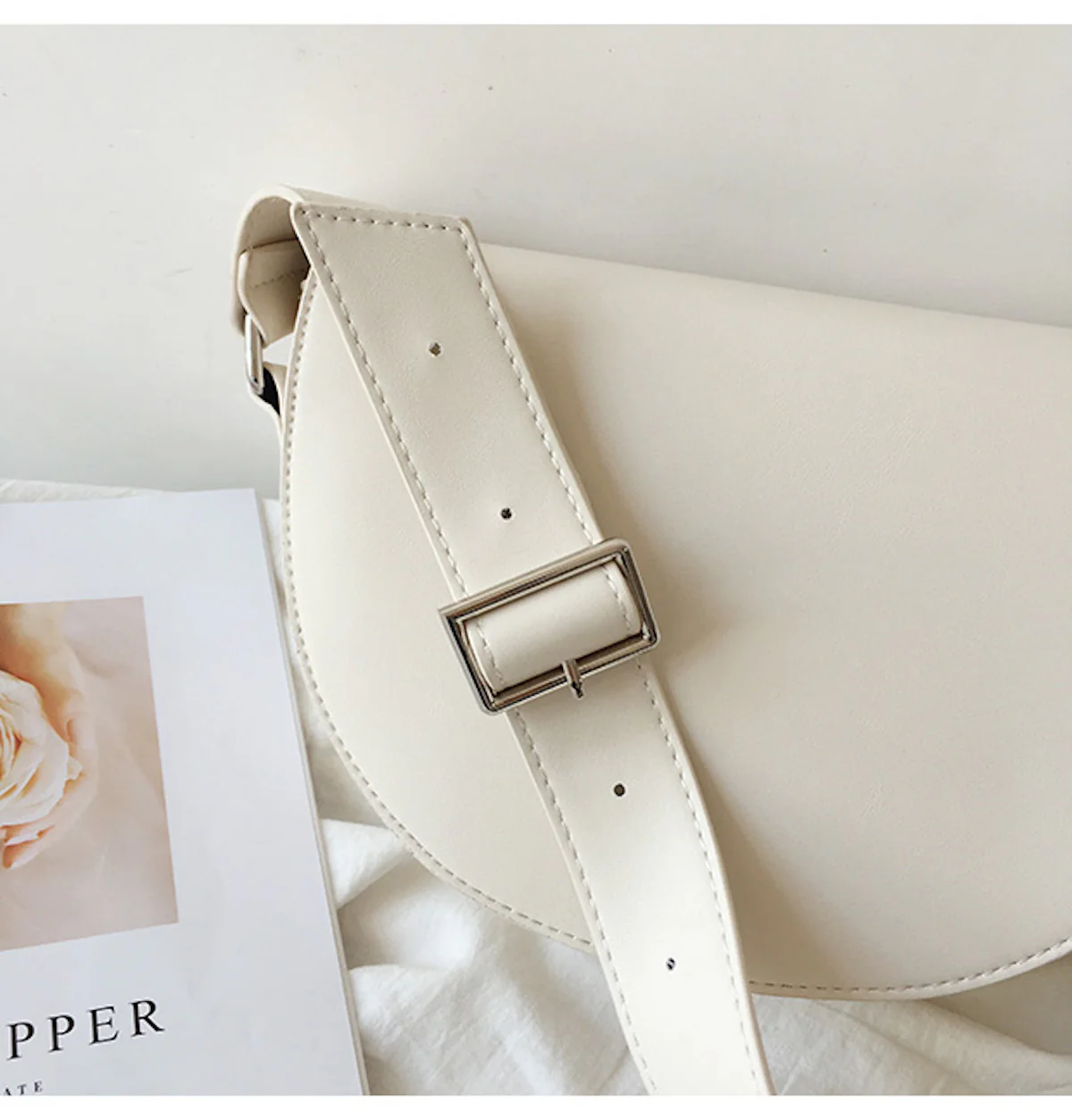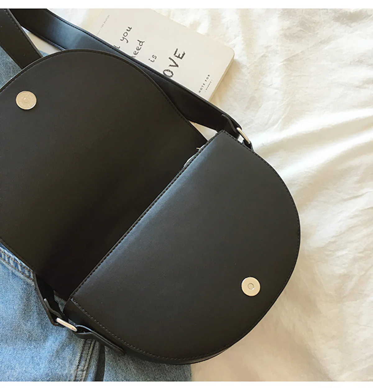 Leather Saddle Flap Bag with Strap